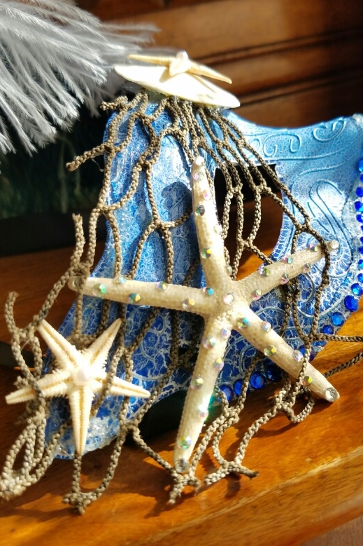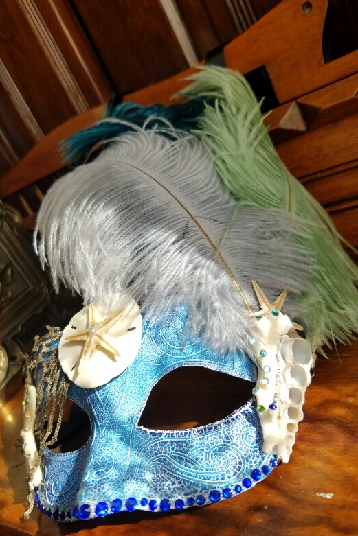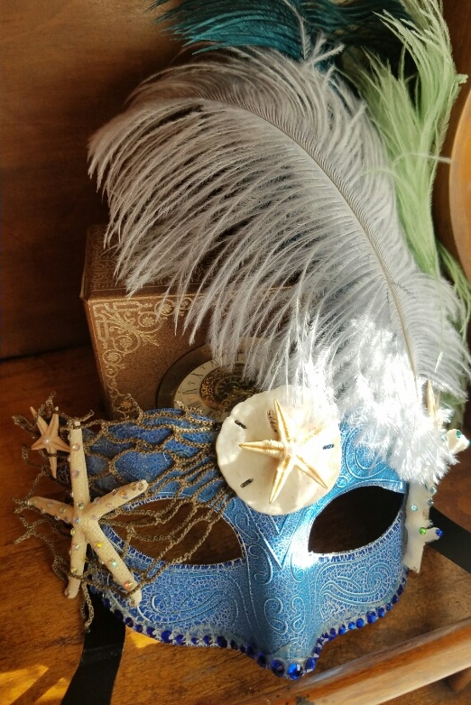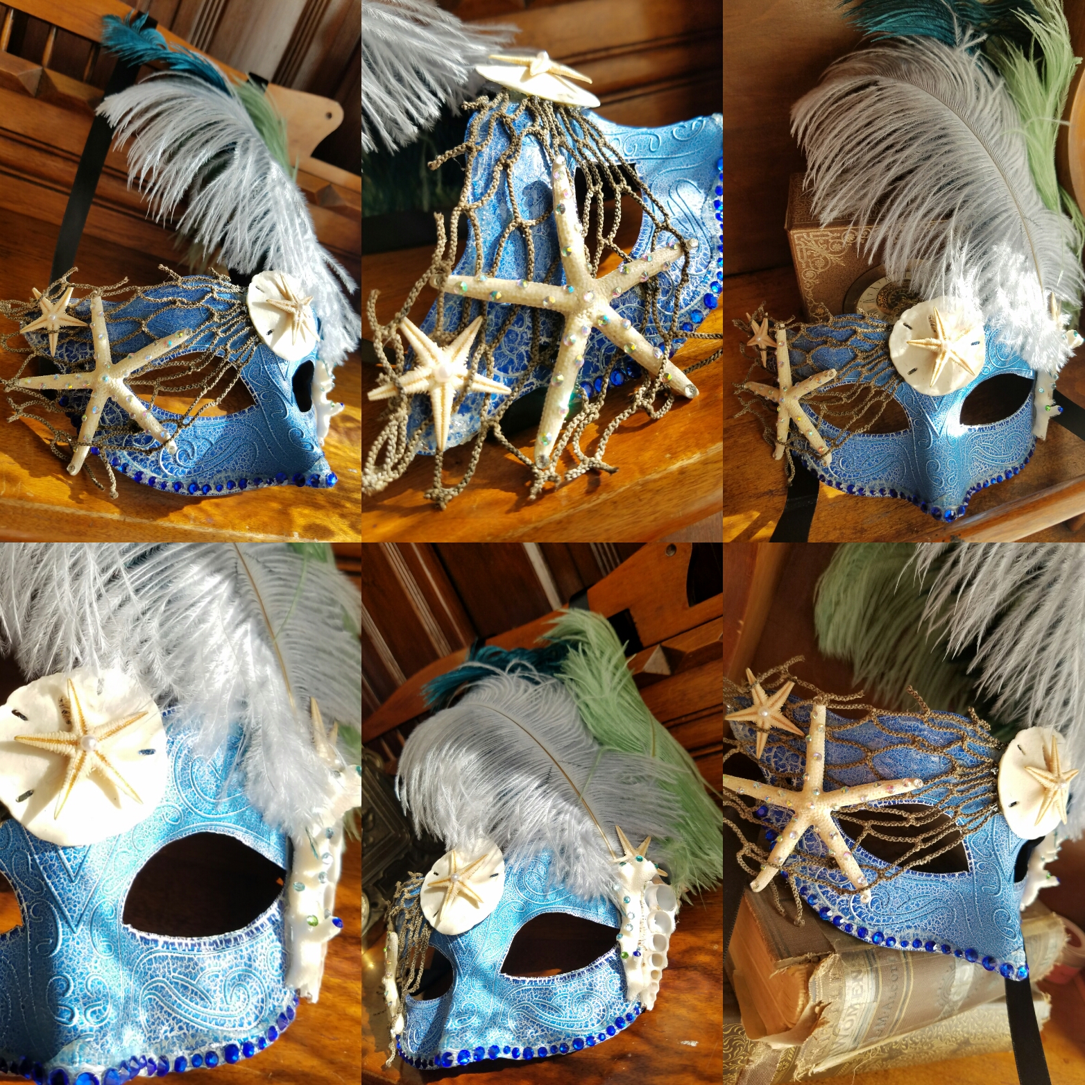 Blue Swirl Mask -Sand dollar -Little starfish -Large starfish -Fishing net -Coral -Ostrich feathers (gray, mint, navy) -Cobalt rhinestones