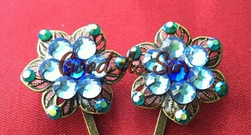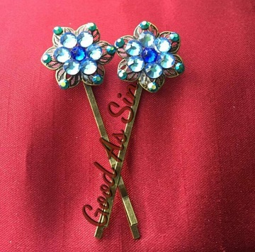 Set of filigree bobby pins -Cobalt blue crystal -Aquamarine crystals -AB Blue Zircon crystals