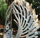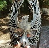 Chrome mask -Gold tip dusted rooster feathers -Iridescent rooster feathers -Brown felt for comfortable wear