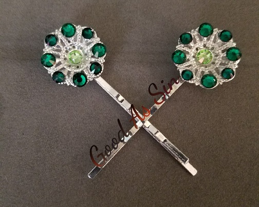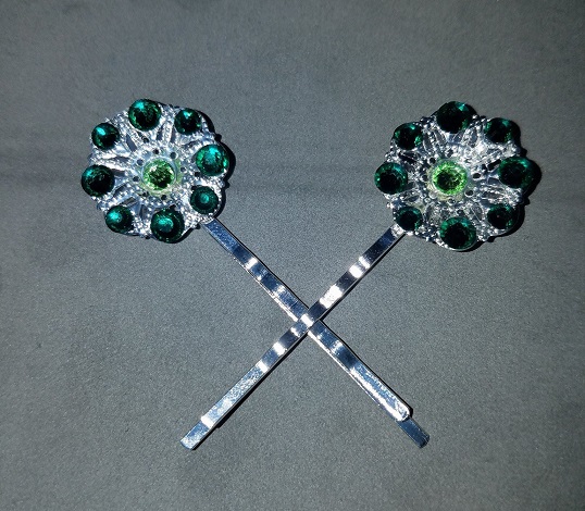 Set of filigree bobby pins -Emerald crystals (large and small) -Peridot crystal