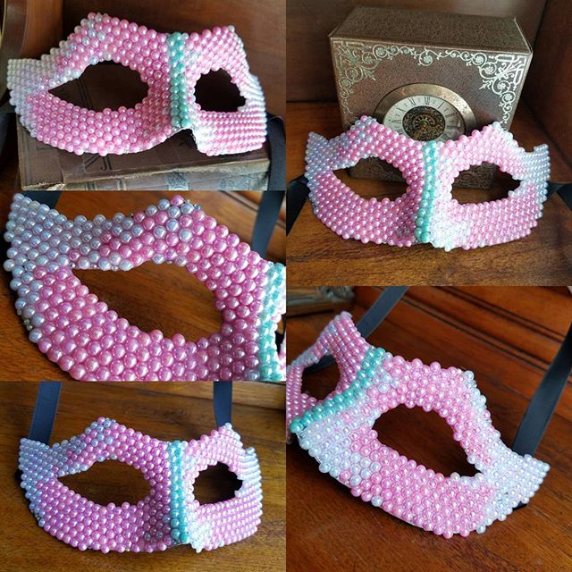 Cat eye mask -AB White pearls -AB Pink pearls -AB Mint pearls