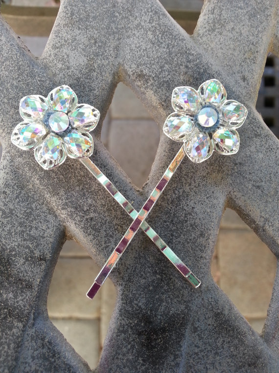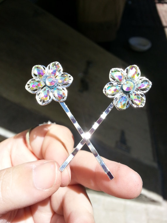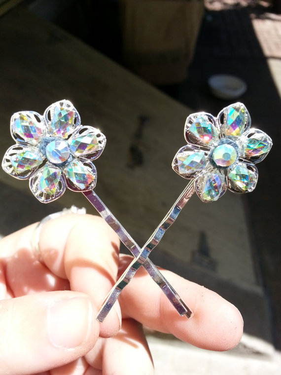 Set of filigree bobby pins -AB Clear crystal (round) -AB Clear crystals (small)
